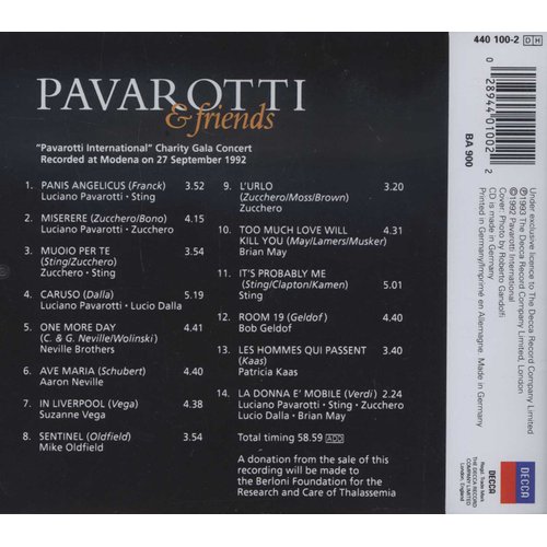 Contributors: Luciano Pavarotti • Sting • Zucchero • Lucio Dalla • The Neville Brothers • Aaron Neville • Suzanne Vega • Mike Oldfield • Brian May • Bob Geldof • Patricia Kaas • Orchestra da Camera • Aldo Sisilli