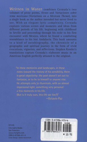 While Cernuda's verse is vivid testimony to various aspects of his biographical itinerary, it is in his prose poems that he traces more explicitly an outline of his life's journey. Reviewing this work, Octavio Paz wrote: "In these memories and landscapes, in these notes toward the history of his sensibility, there is great objectivity; the poet doesn't set out to fantasize, or to lie to himself or anyone else. He attempts only to illuminate, with an almost impersonal light, something very personal: a few moments in his life. But is it truly ours, this life we live?"