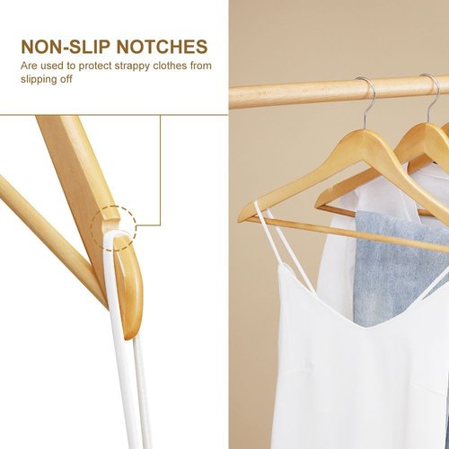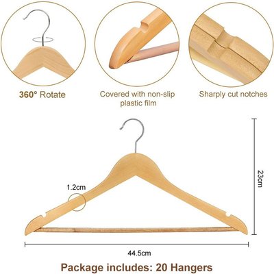 Crafted from high-quality wood, our hangers feature a non-slip anchor design that keeps your clothes in place, preventing them from slipping off onto the floor. Each hanger is designed to hold a wide range of clothing items, from delicate dresses to heavy coats.