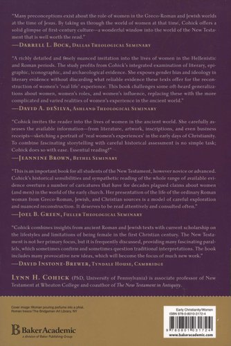 Lynn Cohick provides an accurate and fulsome picture of the earliest Christian women by examining a wide variety of first-century Jewish and Greco-Roman documents that illuminate their lives. She organizes the book around three major spheres of life: family, religious community, and society in general. Cohick shows that although women during this period were active at all levels within their religious communities, their influence was not always identified by leadership titles nor did their gender always determine their level of participation. The book corrects our understanding of early Christian women by offering an authentic and descriptive historical picture of their lives. Includes black-and-white illustrations from the ancient world.
