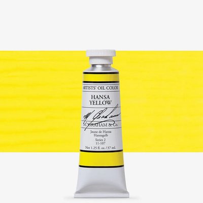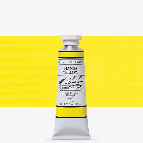 Hansa Yellow is a bold, primary yellow. Brighter and less opaque than Cadmium Yellow Light, and cooler than Azo Yellow.