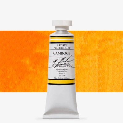 Gamboge is a modern lightfast equivalent of original Gamboge. More orange than Indian Yellow.