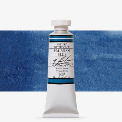 Prussian Blue is a traditional iron blue of great strength. More subtle than Phthalocyanine Blue.
