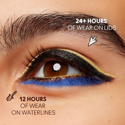 Unleash your inner graphic artist! Longwear technology meets silky-smooth, saturated pigment in a lineup of liners with a hi-def, technicolour edge. These waterproof, cyber-inspired colours boast 24+ hours of wear on lids and 12 hours of wear on waterlines. Line-Lock Technology promises lasting transfer-proof application – while Pigment Alchemy delivers smooth-glide, single-swipe potent payoff. Where will you draw the line?