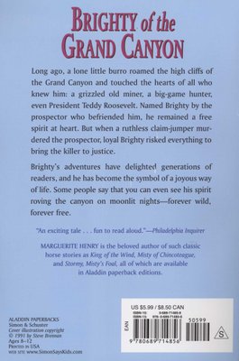 Brighty's adventures have delighted generations of readers, and he has become the symbol of a joyous way of life. Some people say that you can even see his spirit roving the canyon on moonlit nights-forever wild, forever free.