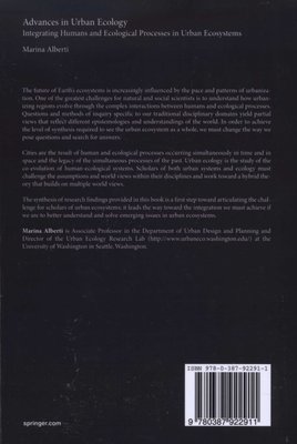 This groundbreaking work is an attempt at providing a conceptual framework to synthesize urban and ecological dynamics into a common framework. The greatest challenge for urban ecologists in the next few decades is to understand the role humans play in urban ecosystems. The development of an integrated urban ecological approach is crucial to advance ecological research and to help planners and managers solve complex urban environmental issues. This book is a major step forward.