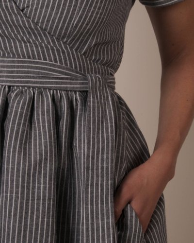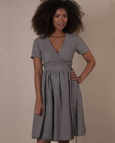 Marique Yssel Woven Wrap Dress in Black Stripe Poly Cotton.