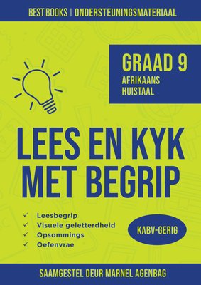 Die Lees en kyk met begrip-reeks vir die senior fase bied splinternuwe KABV-gerigte geskrewe en visuele tekste om leerders se leesbegrip te versterk. Huistaalleerders in Graad 9 sal aanklank vind by die inhoud wat met sorg uitgesoek is om aan te sluit by hul ervaringswêreld en taalvermoëns. Materiaal wissel van artikels en berigte tot advertensies, strokiesprente, spotprente, plakkate, pamflette en opsommings. ’n Memorandum met antwoorde op die vrae is ná publikasie beskikbaar by bestbooks.co.za