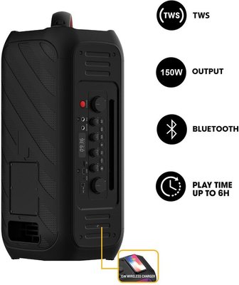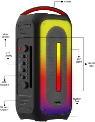 With a quick 4-hour charge time and a 6-hour playtime, this speaker is designed for on-the-go partying. Its compact and portable design ensures that the festivities follow you wherever you roam, making it the perfect companion for your dynamic lifestyle.