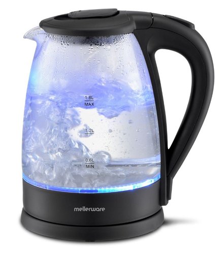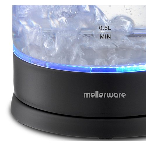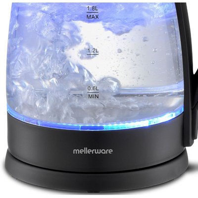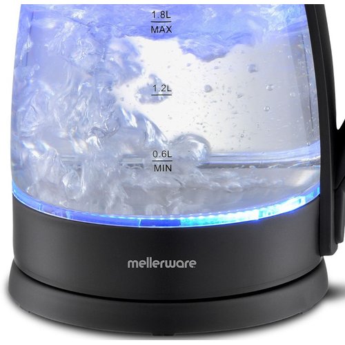 The Mellerware Storm Glass Kettle combines elegance, performance, and value in one stylish design. Crafted from durable high borosilicate glass with a sleek stainless steel base, it features a striking blue LED illumination that lights up while boiling—adding a modern touch to any kitchen. With its 1.8L capacity and powerful 2200W concealed heating element, you can enjoy rapid boiling every time. The 360° cordless swivel base offers convenient handling, while automatic switch-off, boil-dry, and overheat protection ensure safe operation. Complete with a pull-up lid, water gauge, and cord storage, the Mellerware Storm Kettle is the perfect blend of beauty and functionality.