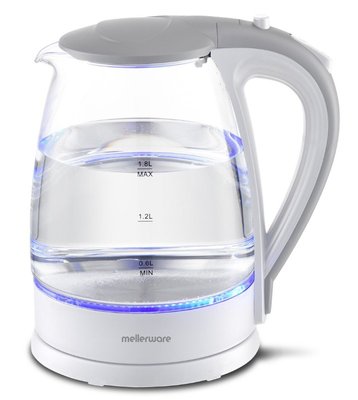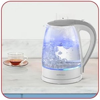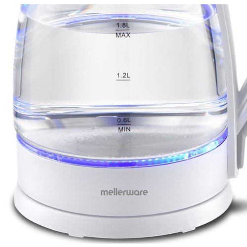 The Mellerware Storm Glass Kettle combines elegance, performance, and value in one stylish design. Crafted from durable high borosilicate glass with a sleek stainless steel base, it features a striking blue LED illumination that lights up while boiling—adding a modern touch to any kitchen. With its 1.8L capacity and powerful 2200W concealed heating element, you can enjoy rapid boiling every time. The 360° cordless swivel base offers convenient handling, while automatic switch-off, boil-dry, and overheat protection ensure safe operation. Complete with a pull-up lid, water gauge, and cord storage, the Mellerware Storm Kettle is the perfect blend of beauty and functionality.