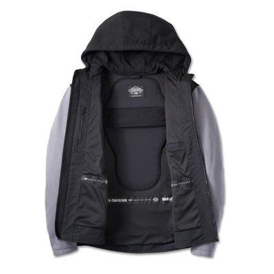 • Fit & Mobility: Pre-curved sleeves. Adjustable hood.