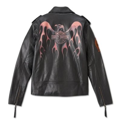 Burning Eagle Leather Jacket. It’s cut from cow leather that’s wax-coated to