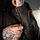 • Design Details: Snap-tab mandarin collar. Contrast leather piecing.