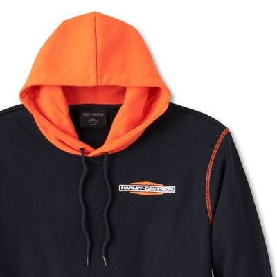 Hoodie checks all those boxes. It has contrasting hood and trim plus raised