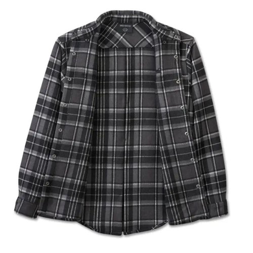 The plaid pattern synchs with our embroidered graphics on the front and back for