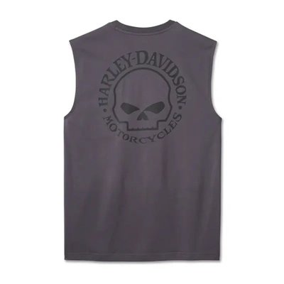 Our Willie G Skull Muscle an ideal pack-long shirt for rides and rallies. It sleeveless style is