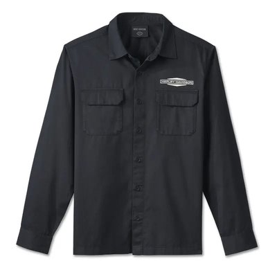 Harley-Davidson. Know the history—the stacked Bar & Shield logo featured on this