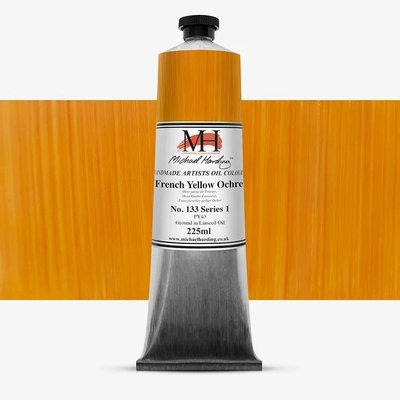 PY 43. Fast drying, semi-transparent.French Yellow Ochre is a glowing natural yellow. Ochre, an iron oxide earth pigment, can be traced back to paintings from the Middle Stone Age. Landscapes painters and portrait painters alike will find uses for this soft, natural yellow pigment.