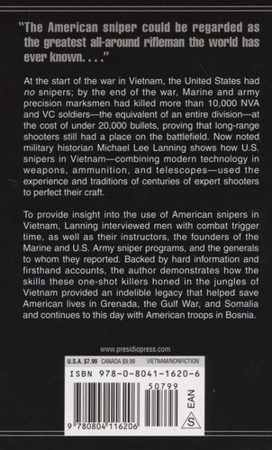 At the start of the war in Vietnam, the United States had no snipers; by the end of the war, Marine and army precision marksmen had killed more than 10,000 NVA and VC soldiers--the equivalent of an entire division--at the cost of under 20,000 bullets, proving that long-range shooters still had a place in the battlefield. Now noted military historian Michael Lee Lanning shows how U.S. snipers in Vietnam--combining modern technology in weapons, ammunition, and telescopes--used the experience and traditions of centuries of expert shooters to perfect their craft.