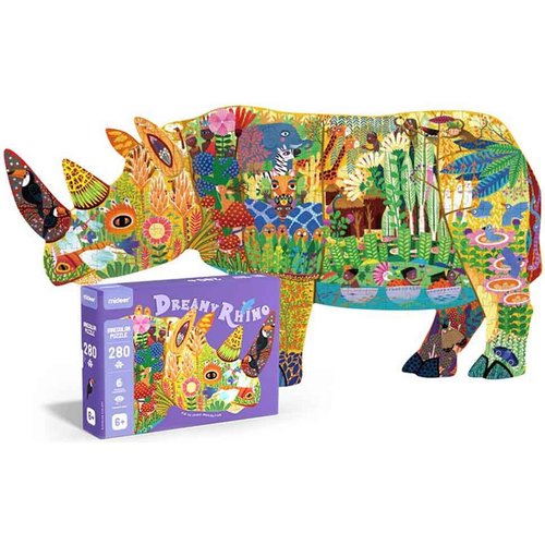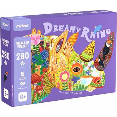 The Mideer Dreamy Rhino Irregular-Shaped Puzzle is different from other jigsaw puzzles, not only due to its size, but the patterns and other animal species featured create a visual feast! The artistic picture-in-picture illustrations are simply exquisite!