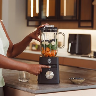 This 1.5L Stainless Steel Jug Blender combines power, style, and convenience with its 1200W motor and 6-leaf stainless steel blades for smooth, consistent results every time. It features stepless speed control, three pre-set programs (pulse, ice crushing, smoothie), a durable glass jug, detachable blades for easy cleaning, and a double safety lock system with non-slip feet for added stability. A removable cap filter makes it easy to add ingredients mid-blend, and it comes with a 1-year warranty, extendable to 2 years when registered online.