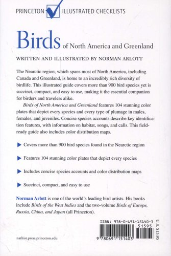 "Birds of North America and Greenland" features 102 stunning color plates that depict every species and every type of plumage in males, females, and juveniles. Concise species accounts describe key identification features, with information on habitat, songs, and calls. This field-ready guide also includes color distribution maps.Covers more than 900 bird species found in the Nearctic region Features 102 stunning color plates that depict every species Includes concise species accounts and color distribution maps Succinct, compact, and easy to use
