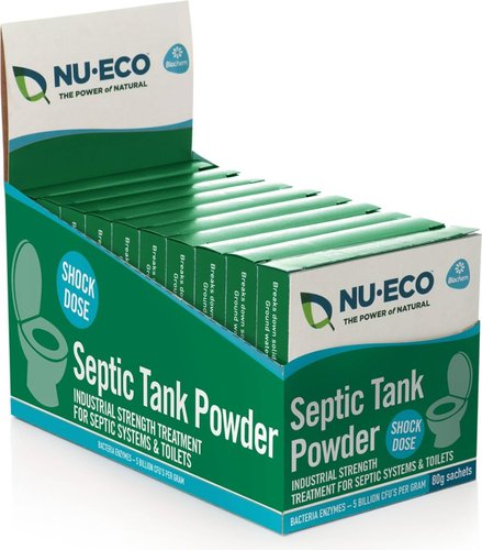 Nu-Eco Septic Tank Powder 80g is an industrial strength, shock dose treatment for septic systems and toilets.