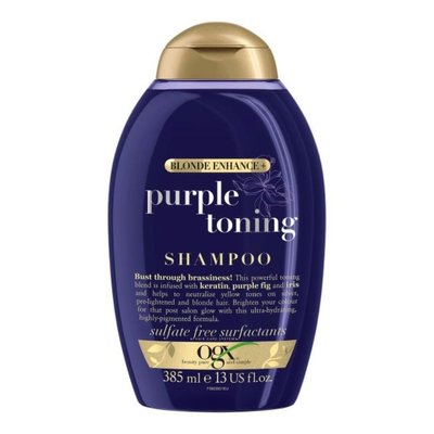 Say goodbye to brass and hello to a brighter shade of blonde with OGX Impecca-Blonde Purple Toning Shampoo. Formulated with a powerful, highly pigmented purple shade with ingredients like purple fig, iris and keratin, this moisturizing shampoo is great for brightening blonde hair while fighting off brassiness. No matter if your hair is silver, pre-lightened or naturally blonde, let your hair be the best blonde it can be by adding this purple toning shampoo to your routine. Simply add this blonde hair shampoo to your routine to help color-correct yellow tones. This buildable coverage makes it the perfect product for those who want to personalize their tone! Want even more color-correction? Try pairing our Impecca-Blonde Purple Toning Shampoo with our powerful purple toning drops, along with your favorite OGX conditioner.
