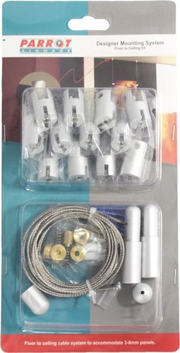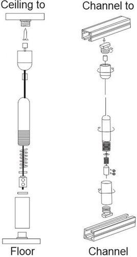 The floor to ceiling signage cable system allows you to anchor a cable wire from the ceiling to the floor usiing masonry screws.