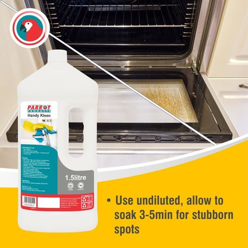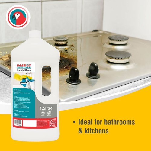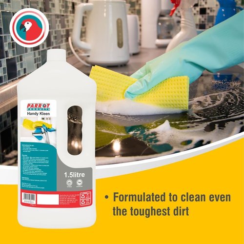 The Parrot Janitorial Handy Kleen 1.5L (JA0401-15H) is a multi-purpose liquid cleaner designed for everyday use in commercial, industrial, and domestic settings. Formulated for versatility, it effectively removes dirt, grime, and light stains from a variety of hard surfaces.