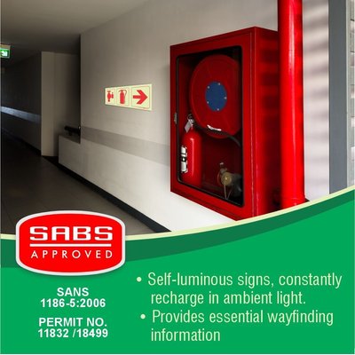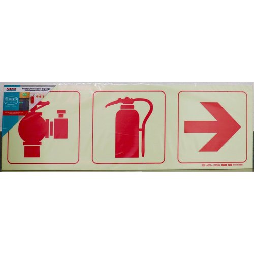 The parrot Photoluminescent 190mm Safety Sign F12 Fire Hydrant; Fire Extinguisher; Arrow Right sign is Self-luminous, these signs constantly recharge in ambient light, providing continous high glow in low light or dark areas. Provides essential wayfinding information for emergency procedures, directional messages, fire prevention, fire-fighting equipment and emergency escape routes.