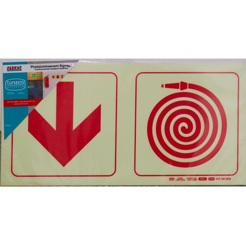 The parrot Photoluminescent 190mm Safety Sign F14 Arrow Down Fire Hose Reel sign is Self-luminous, these signs constantly recharge in ambient light, providing continous high glow in low light or dark areas. Provides essential wayfinding information for emergency procedures, directional messages, fire prevention, fire-fighting equipment and emergency escape routes.