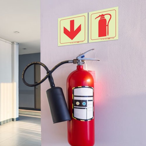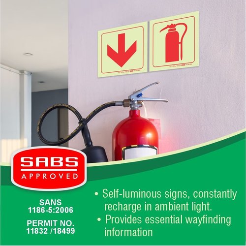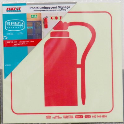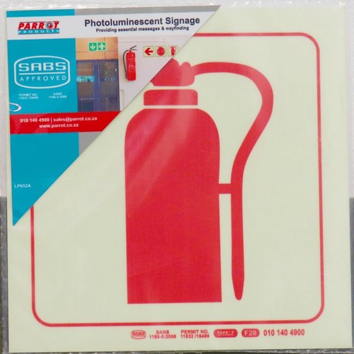 The parrot Photoluminescent 190mm Safety Sign F28 Fire Extinguisher is Self-luminous, these signs constantly recharge in ambient light, providing continous high glow in low light or dark areas. Provides essential wayfinding information for emergency procedures, directional messages, fire prevention, fire-fighting equipment and emergency escape routes.