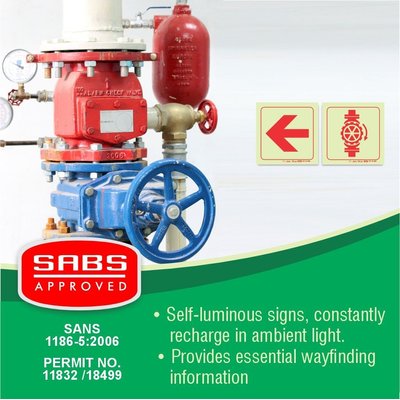 The parrot Photoluminescent 190mm Safety Sign F32 sprinkler stop valve is Self-luminous, these signs constantly recharge in ambient light, providing continous high glow in low light or dark areas. Provides essential wayfinding information for emergency procedures, directional messages, fire prevention, fire-fighting equipment and emergency escape routes.