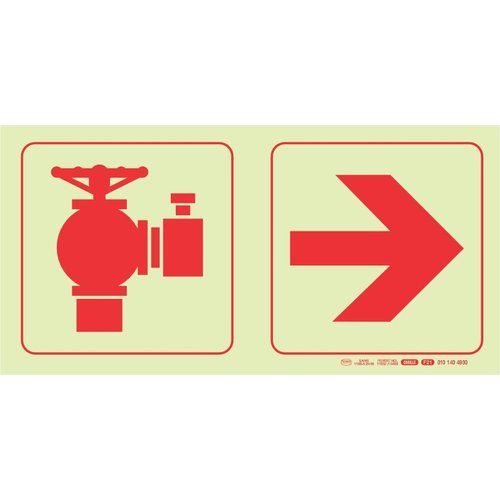 Parrot Photoluminescent 190mm Safety Sign - Fire Hydrant + Arow Right