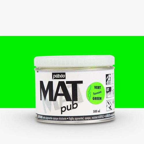 Pebeo Mat Pub is a range of opaque, fluid, matt acrylics that resemble acrylic gouache. They can be used on nearly all surfaces and have been popular with illustrators, designers and street artists since 1978.
