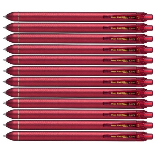 Pentel Energel Metal Tip Gel Rollerball with Matt Painted Barrel - Red (12 Pack) - 0.7mm, Retract. Loot Price: R261