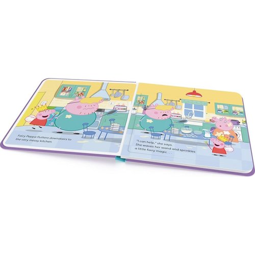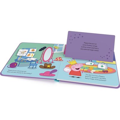 Peppa has dressed up as a fairy. She has some fluttery wings, a shiny crown, and a very special magic wand! Read the story and lift the flaps to discover what happens when Fairy Peppa spreads a little fairy magic!