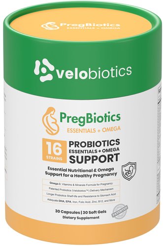 PregBiotics Essentials + Omega combines a complete prenatal probiotic and multivitamin blend with essential Omega-3s to support baby’s brain, eye, and nervous system development, while boosting mom’s gut health, immunity, and overall wellness before, during, and after pregnanc