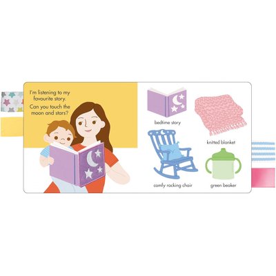 Soothe your baby ready for bedtime with Sleepy Baby Cloth Book from Priddy Books. Focusing on three stages of getting ready for bed such as bath time, story time and going to sleep, this book is designed to be read to babies as part of their bedtime or naptime routine. Each spread features an illustrated vignette of a baby with labelled images on the other page to introduce new vocabulary, encourage early speaking skills and word-picture association. This book has soft padded cloth pages which are easy to hold and turn pages. Each spread also includes a different texture for babies to touch and feel. There are four ribbons attached to the side of the cloth book with different patterns and tactiles for added sensory exploration. The encouraging text is perfect for reading out loud together as part of story time. Publishing into the same series as Happy Baby, a tabbed board book publishing in October 2023.