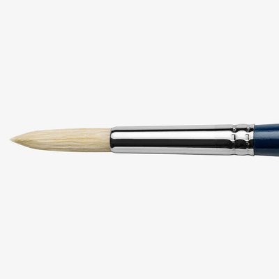 Pro Arte Series C Flat Round Brushes are great value brushes designed for use with oil colour but can also be used with water-mixable oil, alkyd oil, and acrylic.Their round shape is perfect for a range of painting techniques including fine detail, varying thin to thick marks, filling in areas, and washes. Made with hog bristle hair set in a seamless nickelled ferrule, with blue solid wood polished handles.