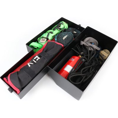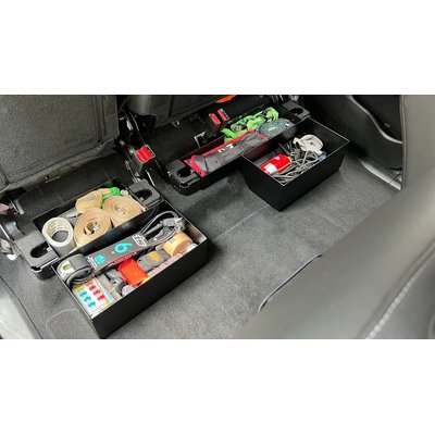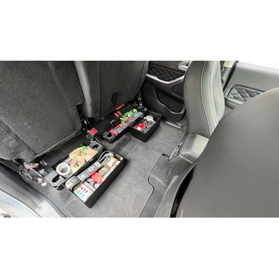 BOX 1 (REAR SEAT – DRIVER’S SIDE): Compartment 1 – 29cm (L) x 18cm (W) x 7cm (D) = 3.65litres; Compartment 2 – 38cm (L) x 20cm (W) x 13cm (D) = 9.88 litres