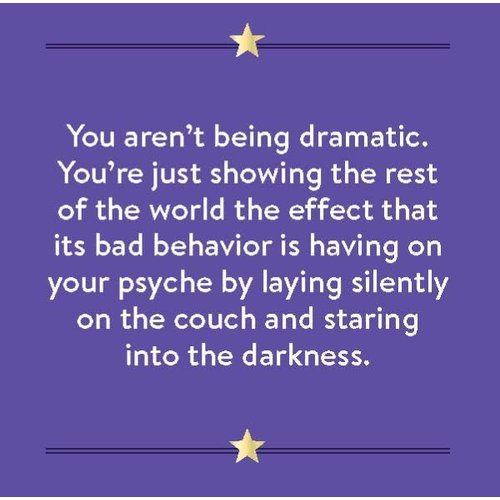 You aren’t being dramatic. You’re just showing the rest of the world the effect that its bad behavior is having on your psyche by laying silently on the couch and staring into the darkness.