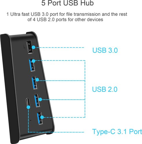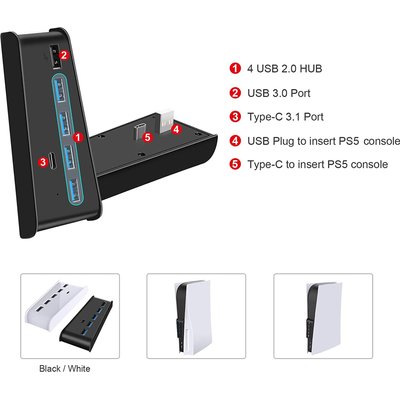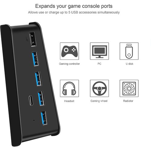 - The USB 3.0 HUB with 1 USB 3.0 Port, 4 USB 2.0 Ports, and 1 Type-C port to compatible all devices you might need to play PlayStation 5 with, offer your better USB extension solution for PS5 console
