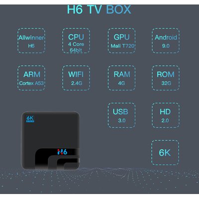- Powered by Allwinner H6 Quad-Core Cortex A53 CPU. It also features Android 9.0, HD 2.0, USB3.0, and a Mali-T720 GPU.