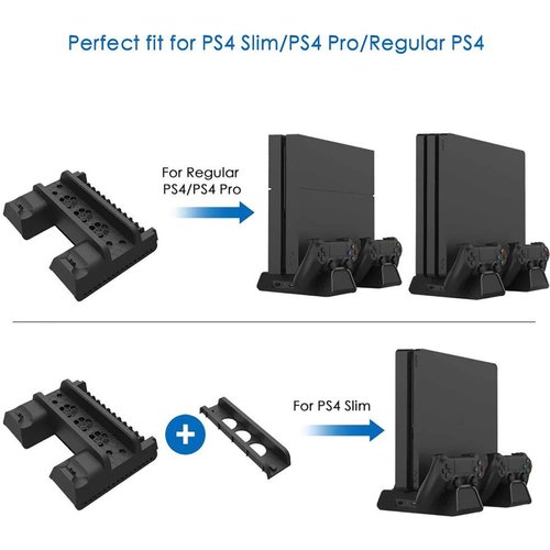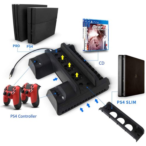 PS4 Pro/PS4 Slim/PS4 Cooling Vertical Stand,3 Cooling Fans, 2 Controller Charging Stations and 12 Disk Slots