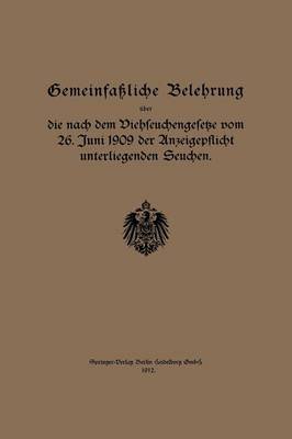 Gemeinfassliche Belehrung UEber Die Nach Dem Viehseuchengesetze Vom 26. Juni 1909 Der Anzeigepflicht Unterliegenden Seuchen (German, Paperback, 1912 ed.) Loot Price: R1,455
