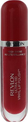 Get pout perfect lips with the Revlon Ultra HD Vinyl Lip Polish - Cherry On Top (5.9ml). It is infused with shea butter, vitamin E, and aloe vera extract to intensely condition and moisturise your lips. This richly-pigmented liquid lip colour also has a high-shine finish that offers full coverage in one stroke. Boasting a creamy mango and whipped vanilla fragrance, this Revlon lip colour does not feather or bleed and pleases the senses, giving you perfectly bold lips every day.