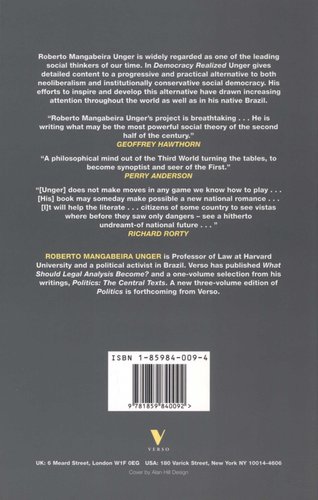 Roberto Mangabeira Unger is widely regarded as one of the leading social thinkers of our time. In Democracy Realized Unger gives detailed content to a progressive and practical alternative to both neoliberalism and institutionally conservative social democracy. His efforts to inspire and develop this alternative have drawn increasing attention throughout the world as well as in his native Brazil.